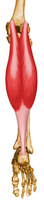 - Inserción: Tuberosidad calcánea a través del tendón de Aquiles.